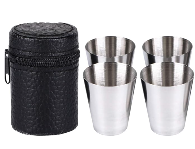 4 stainless steel shot glasses in a great black carry case